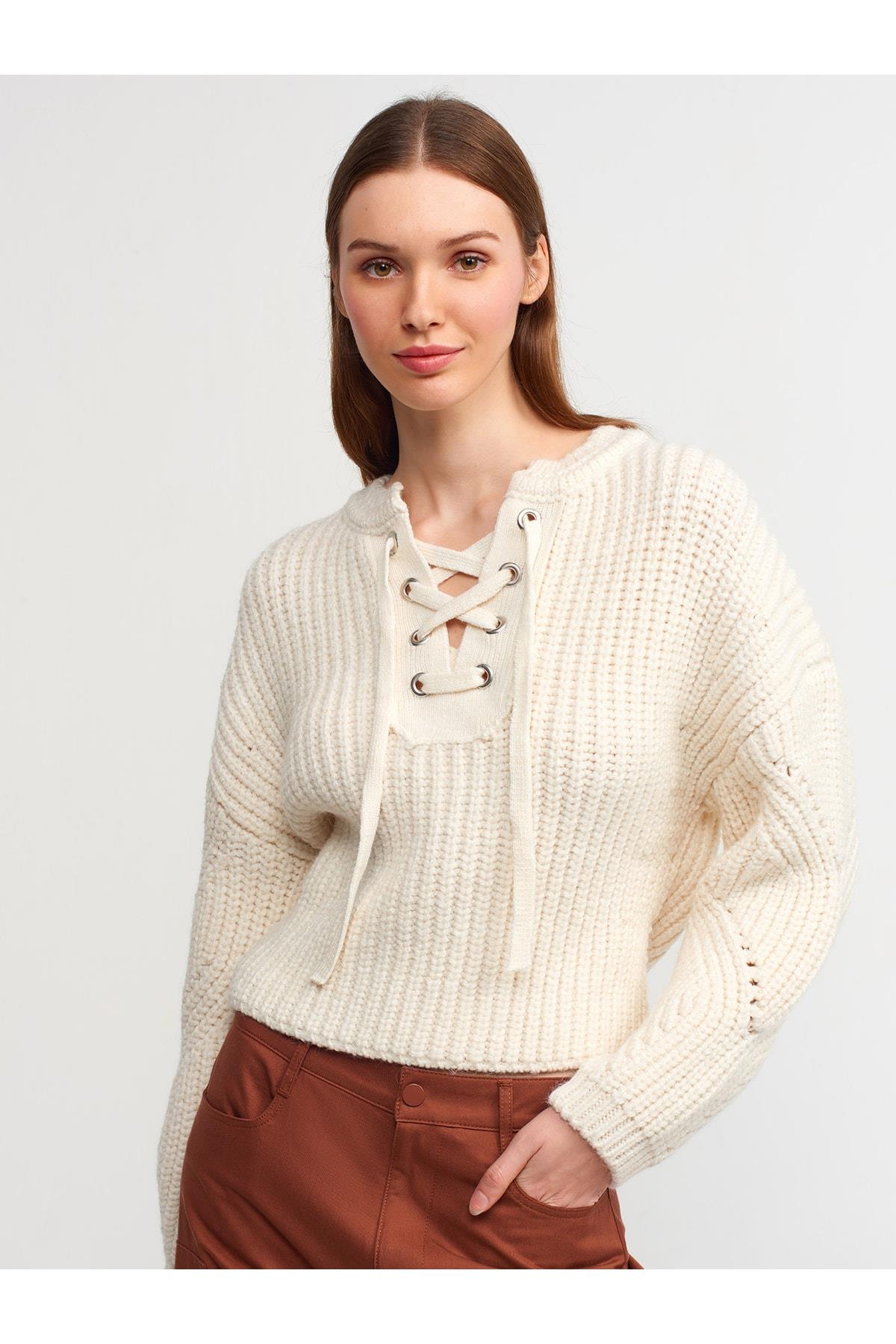 10307 Bisiklet Yaka Bağcıklı Kazak-ekru