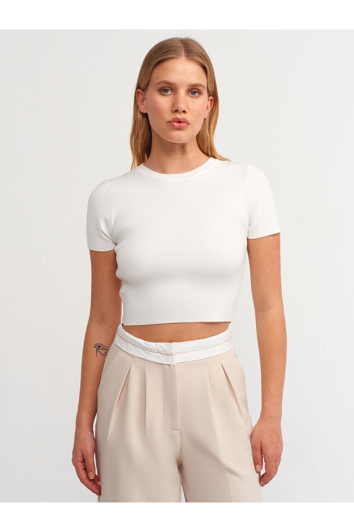 10357 Bisiklet Yaka Kısa Kol Crop Kazak-ekru