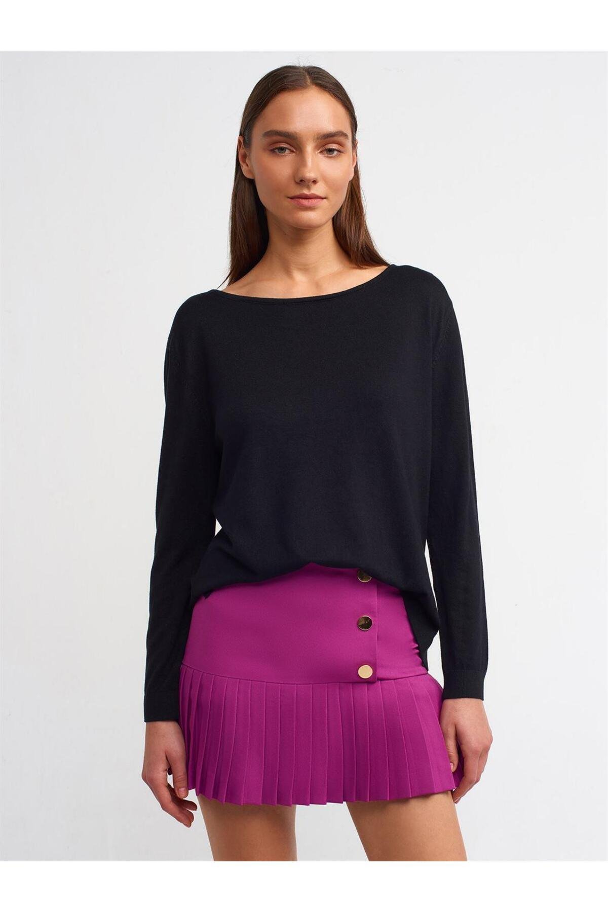 10360 Kayık Yaka Yırtmaçlı Kazak-siyah