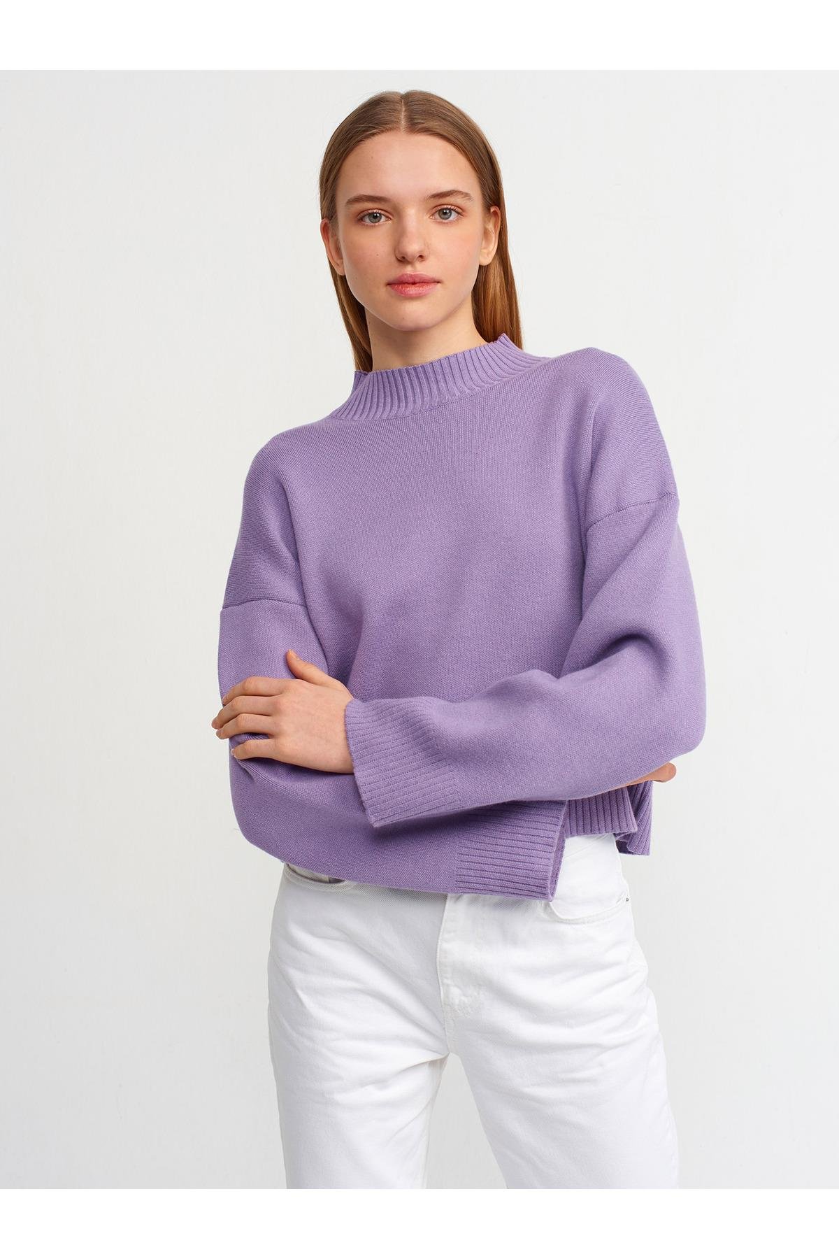 2882 Yarım Balıkçı Geniş Kol Kazak-lavanta