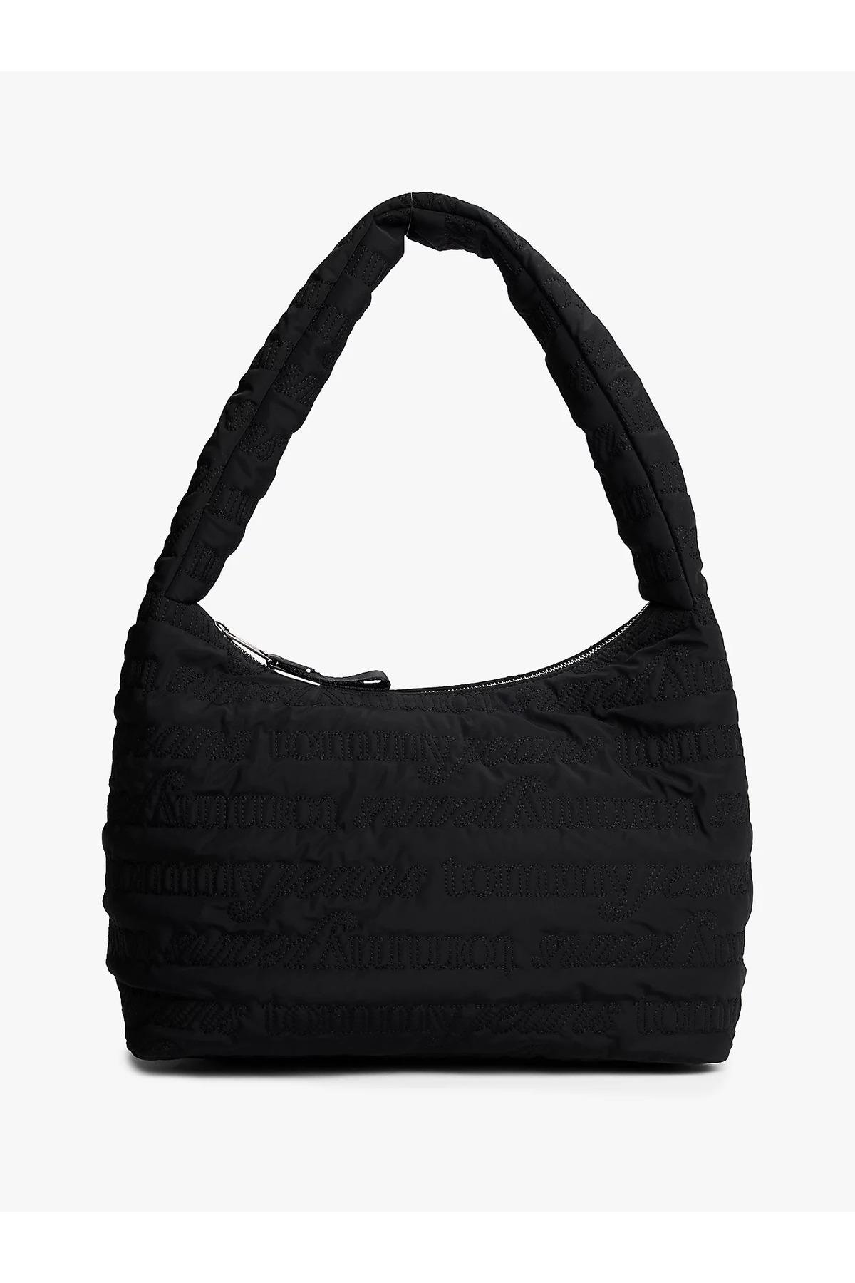 Kadın Fermuarlı İç Cep Kısa Elde Ve Kolda Taşınır Kulp Büzgü Desen Siyah Omuz Çantası AW0AW17882-BDS